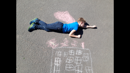 Bei strahlendem Sonnenschein wurden die Kinder mal im Freien künstlerisch tätig