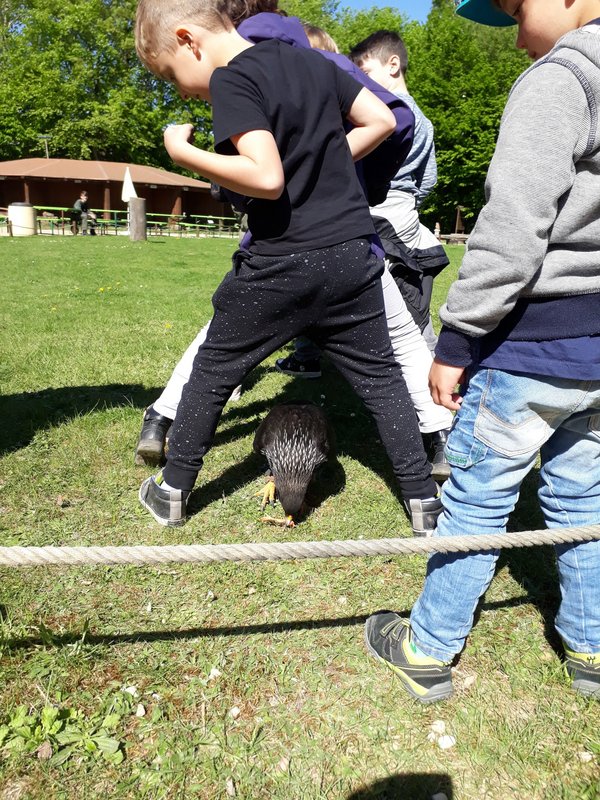 Das Highlight des Tages war die Flugshow, in der die Kinder sogar mitwirken durften. Zunächst bildeten alle Kinder mit ihren Beinen einen Tunnel, durch den dann ein Greifvogel rannte. Anschließend sprang der Adler sogar einigen Kindern auf den Rücken. Am Ende durften alle Kinder eine große Eule streicheln, was sich natürlich keiner entgehen ließ.