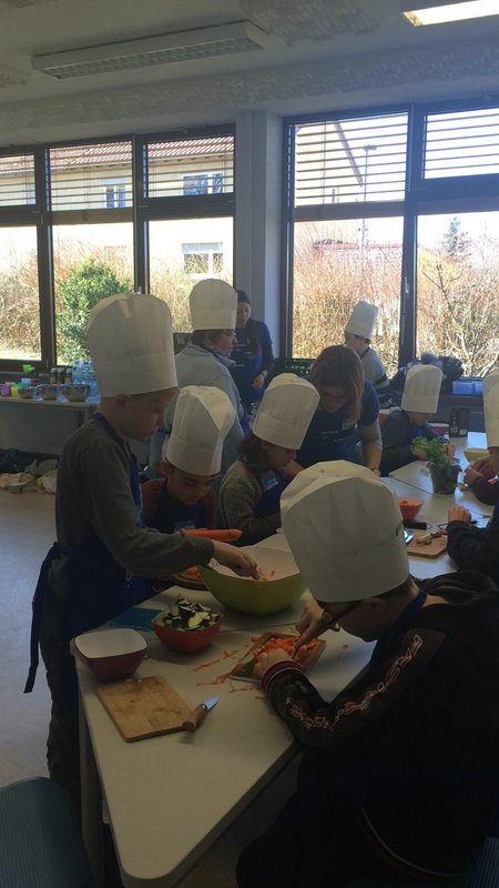 Die Kinder befassten sich theoretisch und praktisch an einem Projekttag mit dem Thema Ernährung, Essen und dem eigenen Wohlbefinden. Durch das Erkennen von Zusammenhängen sollen die Kinder ein Bewusstsein für gesunde Ernährung entwickeln.
