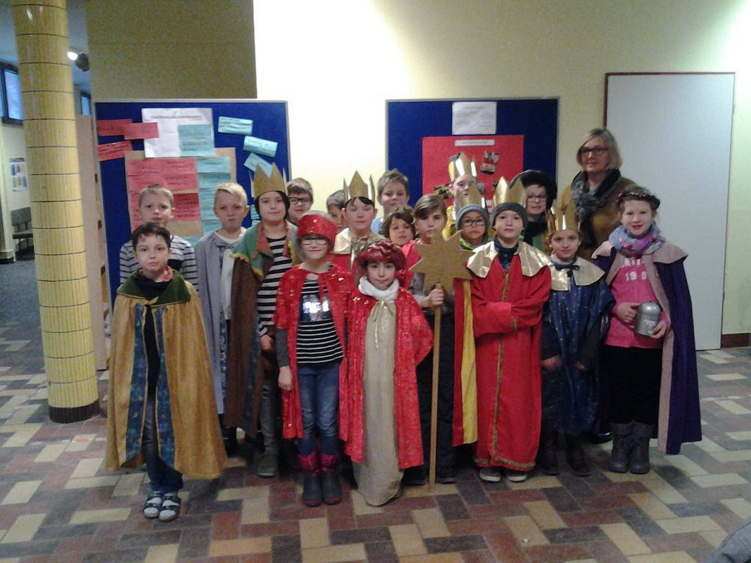 Gleich nach den Weihnachtsferien besuchten daher die Sternsinger der Katholischen Kirchengemeinde St. Michael die Hoferkopf Grundschule Bildstock, um der Schule und allen Schülern den Segen für das Jahr 2017 zu bringen.