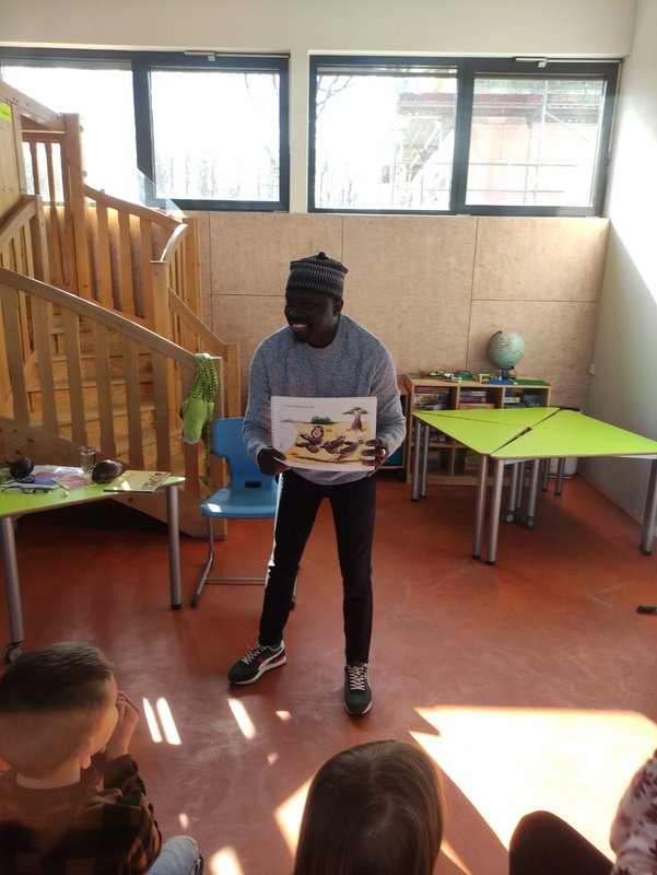 Der 2. März war für die Erstklässler unserer Schule ein ganz besonderer Tag, da ein außergewöhnlicher Gast unsere Schule besuchte. Es ist Ibou, welcher 1963 im Senegal geboren wurde und Germanistik, Romanistik und Anglistik studierte. 2011 wurde Ibou sogar als bester afrikanischer Schriftsteller Europas mit dem Adler Award ausgezeichnet.
