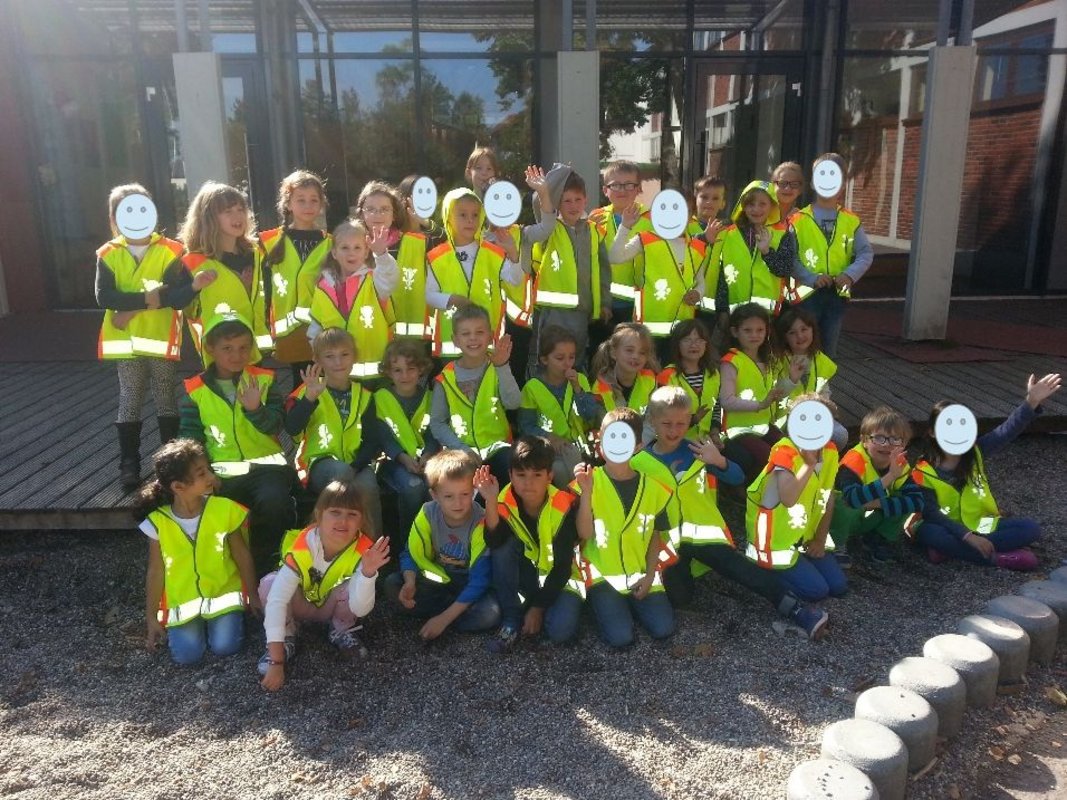 Alle "Erstis" erhielten Sicherheitswesten für die dunkle Jahreszeit. Ein Dank an dieser Stelle an den ADAC, der alle Sicherheitswesten spendete. Die Westen tragen entscheidend dazu bei, dass Schulanfänger im Straßenverkehr sicherer unterwegs sind. Es ist also "ganz schön helle", in eine leuchtende Weste zu schlüpfen! Schließlich sind die Erstklässler nicht nur auf der Schulbank, sondern auch im Straßenverkehr noch Anfänger.